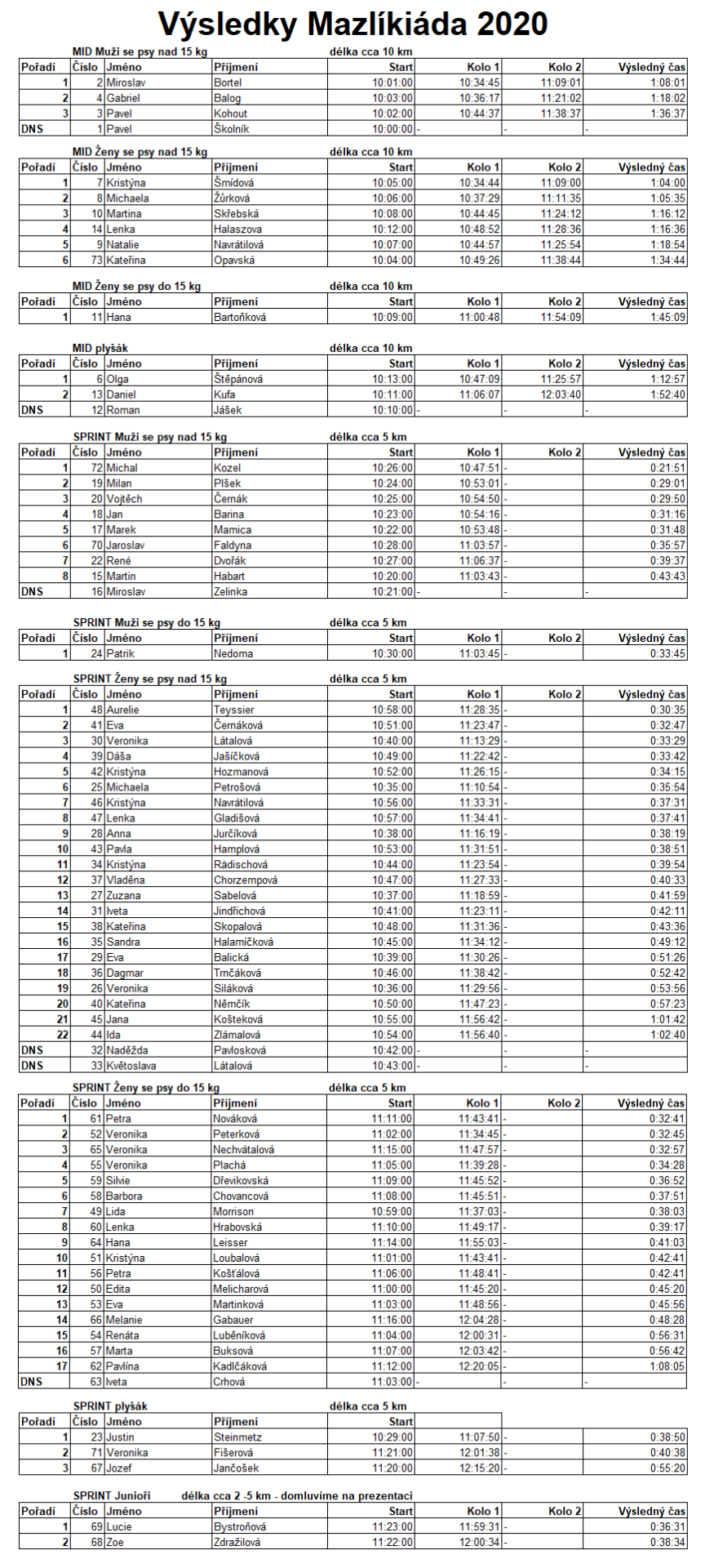 Výsledky Mazlíkiáda 2020